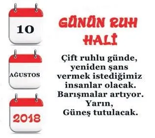 İnsanları birleştiren de ayrıştıran da fikirleridir. Güneş-Satürn ilişkisi eğitim sisteminin değişimine tanıklık edebileceğimizi işaret ediyor. Ülkemiz adına önemli gelişmelerin yaşanabileceği bugün, revize edilen anayasal kararlarla karşılaşabiliriz. hatalarımızdan ders çıkarabilir, geçmişten günümüze yaşanan sorunlara çözüm bulabiliriz.