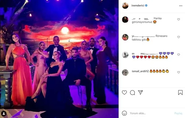 İrem Derici'nin fotoğrafının altına gelen yorumlar ise takipçilerin dikkatinden kaçmadı. Sosyal medya takipçilerinden biri, ünlülerin bir arada yer aldığı fotoğrafın hemen altına 'Rönesans Tablosu gibi' benzetmesi yaptı ve beğeni aldı.
