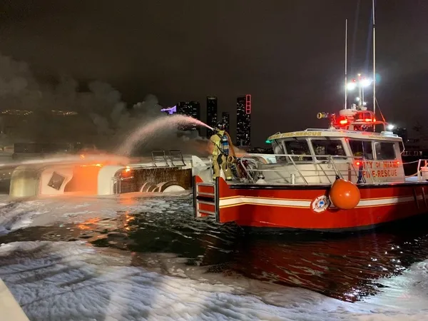 Ünlü şarkıcı Marc Anthony'e ait 7 milyon dolar değerindeki Andiamo adlı süper lüks yat, sebebi henüz bilinmeyen bir şekilde demirli olduğu Miami'deki limanda yanmaya başladı.