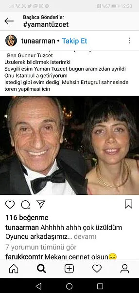 Yaman Tüzcet'in ölümünü eşi Günnur Tüzcet, 'Ben Günnur Tüzcet, üzülerek bildirmek isterim ki Sevgili esim Yaman Tüzcet bugün aramızdan ayrıldı. Onu İstanbul'a getiriyorum. İstediği gibi evim dediği Muhsin Ertuğrul sahnesinde tören yapılması için" diyerek duyurdu.