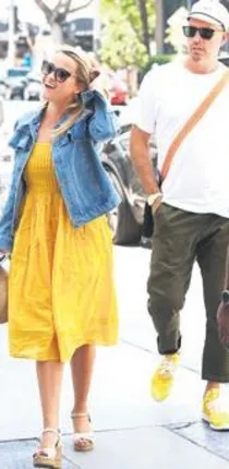 oyuncu Reese Witherspoon ile eşi Jim Toth, önceki gün Santa Monica'da gezmeye çıktı. 42 yaşındaki ünlü oyuncu ile eşinin birbiriyle uyumlu giyimi dikkatlerden kaçmadı. Toth'un, eşinin sarı eteğine uyumlu olarak sarı bir ayakkabı giydiği görüldü.