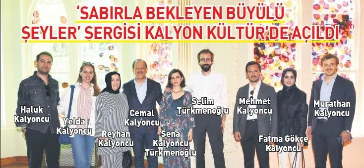 Farklı teknik ve malzemelerle çalışan yedi sanatçının bir araya geldiği 'Sabırla Bekleyen Büyülü Şeyler' isimli sergi, dün Kalyon Kültür'de açıldı. Açılışa Cemal-Reyhan Kalyoncu, Haluk-Yelda Kalyoncu, Mehmet-Fatma Gökçe Kalyoncu, Murathan Kalyoncu, Sena Kalyoncu- Selim Türkmenoğlu katıldı. 25 Kasım'a kadar gezilebilecek sergi, doğanın kendine has örüntülerinin, mekanizmalarının ve manzaralarının yorumlanarak sanat yapıtlarına dönüşme sürecini inceliyor.