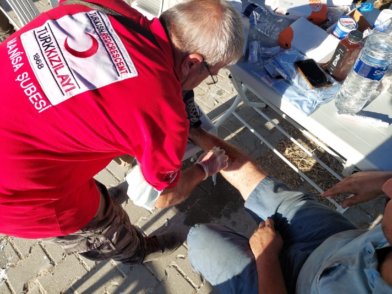 Türk Kızılay Manisa Şubesi İlk Yardım Eğitim Merkezi Mesul Müdürü Özlem Baran ise yangın bölgesine ekibiyle birlikte geçerek orman yangınlarına müdahale eden orman, itfaiye ekipleri, askerler, çeşitli sivil toplum kuruluşları görevlileri ve gönüllülerine ilk yardım uyguladıklarını ifade etti. Baran, “Genelde düşmeye bağlı yaralanma, yanık, gözde yabancı cisim, alandaki yoğun kül yağmurundan kaynaklı ileri derecede göz hassasiyeti, uzun süreli çalışmadan kaynaklı şeker düşüklüğü, kazma kürekle çalışmaktan kaynaklı ele kıymık batması, haşerelerden kaynaklı alerjik reaksiyon gibi durumlar için ilk yardım uygulamalarımızı yaptık. Ekibimiz olarak ilk yardım bilgimiz ve deneyimimizle birlikte tüm afetlerde görev almaya hazırız” diye konuştu.