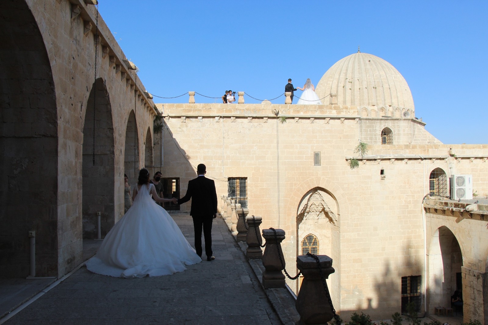 Mardin’de evlilik hazırlıkları yapan çiftler, dış mekan çekimleri için Zinciriye Medresesi yolunu tutuyor. Zinciriye Medresesi, yurt dışından gelen çiftleri de ağırlıyor. Mardin’de hüküm süren son Artuklu Sultanı Melik Necmettin İsa bin Muzaffer Davud bin El Melik Salih tarafından 1385 yılında yaptırılan Sultan İsa Medresesi hala tüm ihtişamıyla ayakta dururken, evlenen çiftlerin dış çekim için en çok tercih ettiği mekan oldu. Yurt dışından da gelen çiftler, buraya gelip dış mekan çekimlerini gerçekleştiriyor. Dış çekim için Zinciriye Medresesini tercih ettiklerini kaydeden gelin Sevim Belli, "Mardinliyim, evleniyorum. Öncelikle mutlu günümüzü güzel şehrimiz Mardin’de geçirmek istedik. Hatta daha önce yeşil alana gitsek mi diye düşünürken, daha sonra Mardin’i yansıtan görüntülerimizin olmasını istedik. Burayı tercih ettik. Özellikle ben bu kubbelerin yanında fotoğraf çekinmeyi istiyordum. Bundan dolayı Zinciriye Medresesi’ndeyiz" dedi.