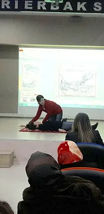 İlk Yardım Eğitimi Müdiresi Sevim Tanrıkulu, ilk yardımın önemini anlattı. Tanrıkulu, sağlık görevlisi gelene kadar ilk yardımın nasıl yapılacağını uygulamalı olarak da gösterdi.