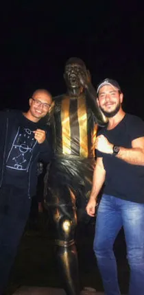 Fenerbahçe'nin efsane futbolcusu Alex de Souza dün gece geldiği İstanbul'da ayağının tozuyla Kadıköy'de bulunan heykelini ziyaret etti. Sarı-lacivertlilerde futbol oynadığı dönemde tercümanlık yapan Samet Güzel ile birlikte heykelinin yanında poz veren efsane futbolcu, bugün bir alışveriş merkezinde kitabı için imza gününe katılacak.