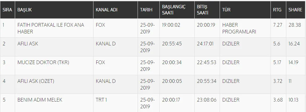 25 EYLÜL REYTİNG SONUÇLARI AÇIKLANDI!