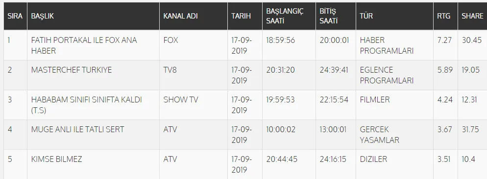17 EYLÜL REYTİNG SONUÇLARI AÇIKLANDI!