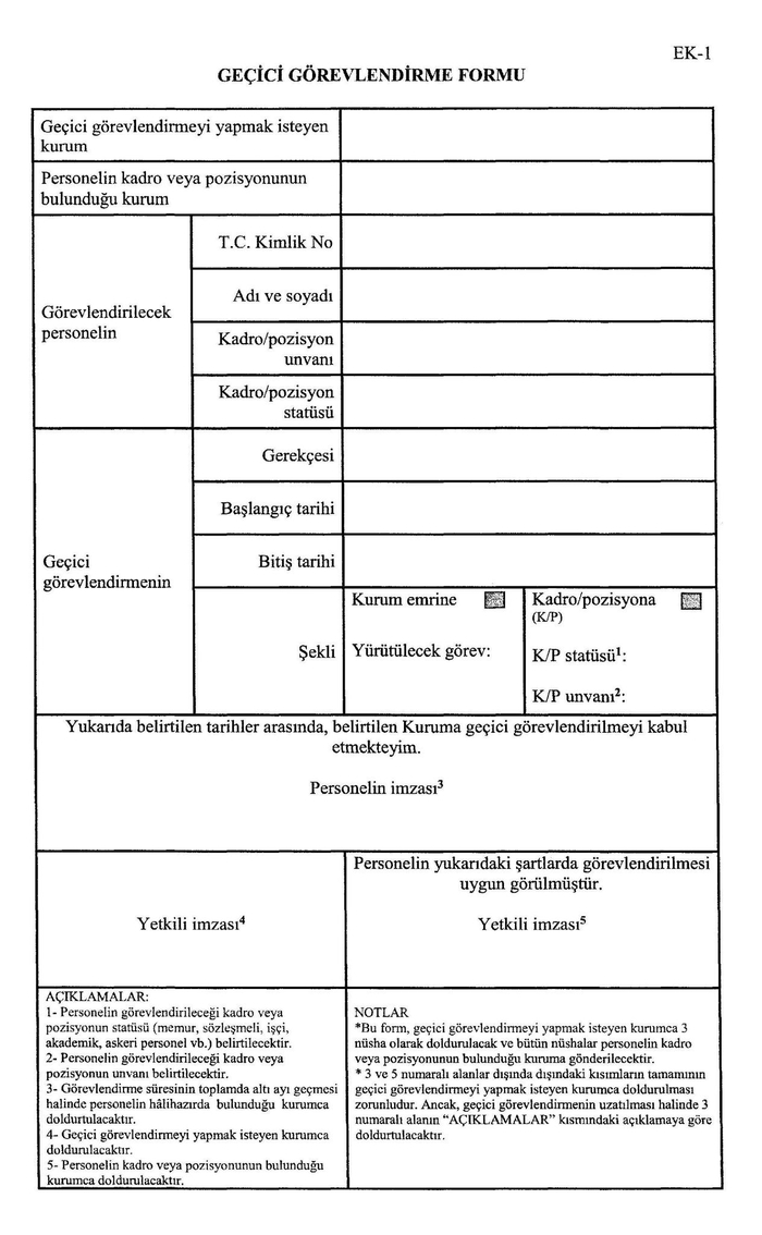 Daha sonra söz konusu form geçici görevlendirme yapılan kuruma gönderilecek ve ilgili personele görevlendirme başlangıç tarihinden en az 5 gün önce tebliğ edilecek. Formun bir örneği ise ilgili personelin özlük dosyasında saklanacak.