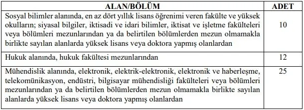 b) En az dört yıllık lisans öğrenimi veren, siyasal bilgiler, iktisadi ve idari bilimler, iktisat ve işletme fakülteleri veya bölümleri, hukuk fakültesi ve mühendislik alanında elektrik-elektronik, elektronik, elektronik ve haberleşme, endüstri, telekomünikasyon ve bilgisayar mühendisliği bölümlerinden ya da bunlara denkliği Yükseköğretim Kurulunca kabul edilmiş yurt dışındaki yüksek öğretim kurumlarından mezun olmak,