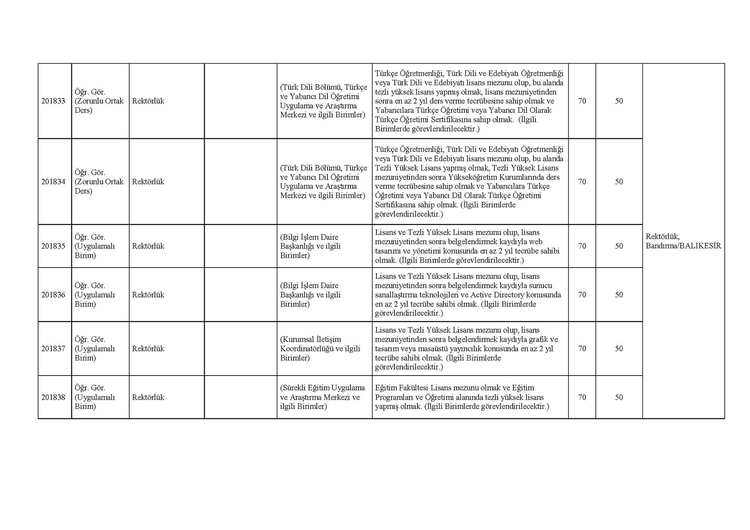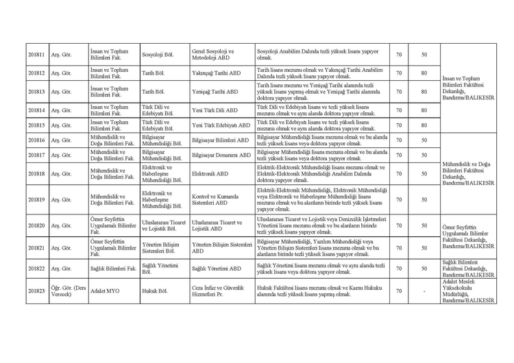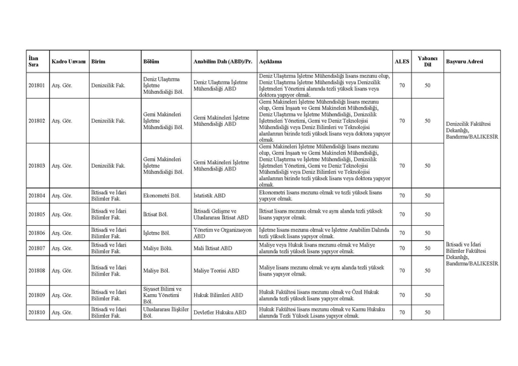 11- Araştırma Görevlisi ilanlarında atamalar 2547 sayılı Kanun'un 50-d maddesine göre yapılacaktır.