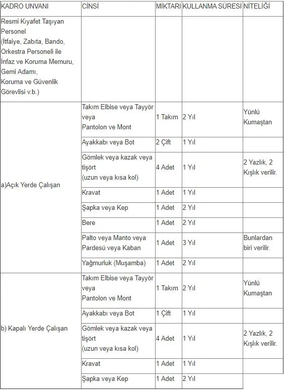 14/9/1991 tarihli ve 91/2268 sayılı Bakanlar Kumlu Karan ile yürürlüğe konulan Memurlara Yapılacak Giyecek Yardımı Yönetmeliğine Ekli I Sayılı Cetvelin 19 uncu sırası değiştirilmiştir.
