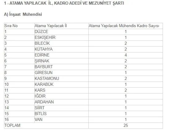 Son müracaat tarihi itibarıyla fakültelerin veya denkliği Yükseköğretim Kurulunca onaylanmış yurt içi veya yurt dışındaki yükseköğretim kurumlarının İnşaat Mühendisliği (YÖKSİS Kayıt No:3468) bölümünden mezun olmak.
