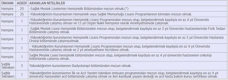 (*) Hemşire Yardımcısı bölümünden mezun olanlar ilana başvuramazlar