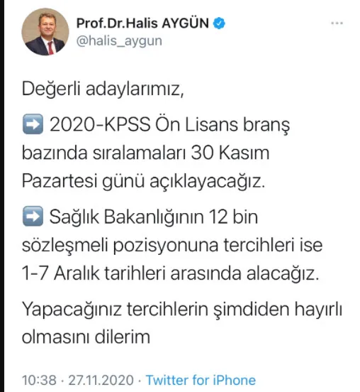 "12.000 pozisyonun il ve sağlık tesisi dağılımının da yer aldığı listeler, ÖSYM Başkanlığına teslim edildi. Gerekli hazırlıklar yapıldıktan sonra Tercih Kılavuzu, ÖSYM'nin internet sitesi üzerinden yayınlanacak ve adaylar tercihlerini bu Kılavuzda belirtilen tarihler arasında yapabilecek. ÖSYM tarafından merkezi yerleştirme ile yapılacak olan atamalarda mülakat olmayacak.Duyurular, Bakanlığımızın Yönetim Hizmetleri Genel Müdürlüğü ve ÖSYM internet adresinden takip edilebilir.Covid-19 salgınıyla mücadele ettiğimiz bu zor dönemde, bu atamaların bize güç katacağına ve vatandaşlarımıza daha nitelikli sağlık hizmeti sunulmasında önemli katkılar sağlayacağına inanıyorum.Sağlık camiamıza hayırlı olsun"
