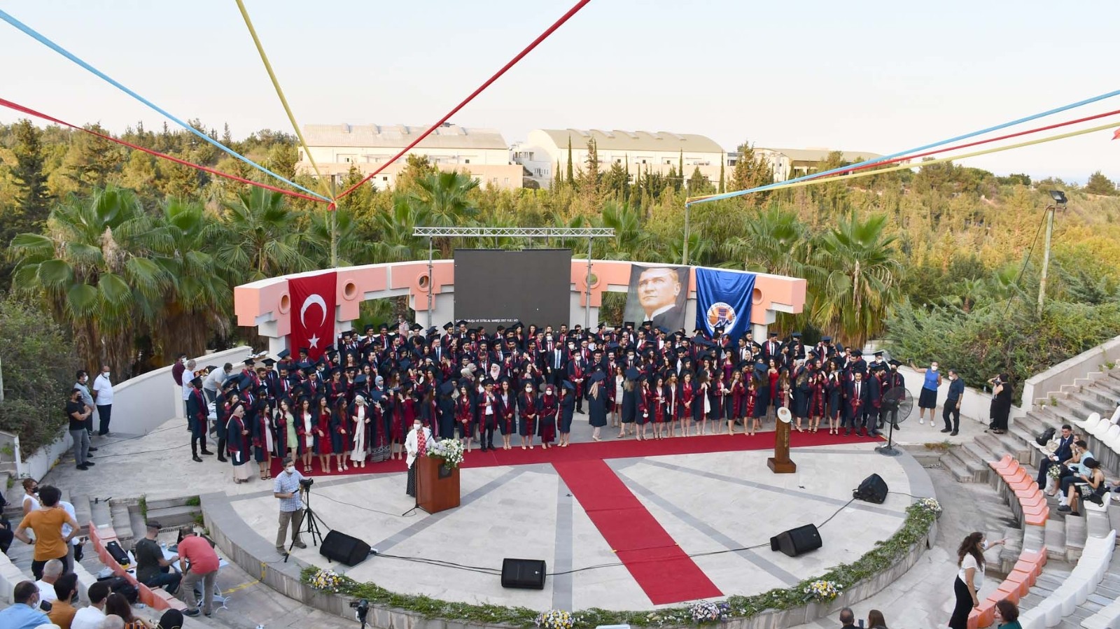 MEÜ Tıp Fakültesi Mezuniyet Töreni, Çiftlikköy Kampüsü amfi tiyatroda gerçekleştirildi. Törene, Rektörü Prof. Dr. Ahmet Çamsarı, Tıp Fakültesi Dekanı Prof. Dr. Ahmet Hakan Öztürk, akademisyenler, mezun öğrenciler ve yakınları katıldı.