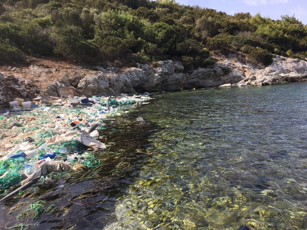 Ege denizinde oluşan çöp adasının fotoğrafları bu kadarına da pes dedirtti. Bodrum ile Güllük arasından oluşan çöp adası utandırdı.