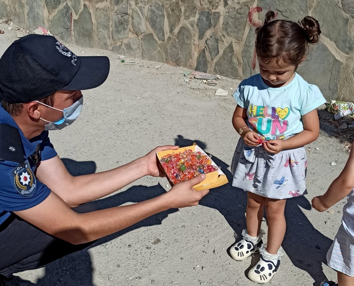 Polis ekiplerinden çocuklara bayram şekeri