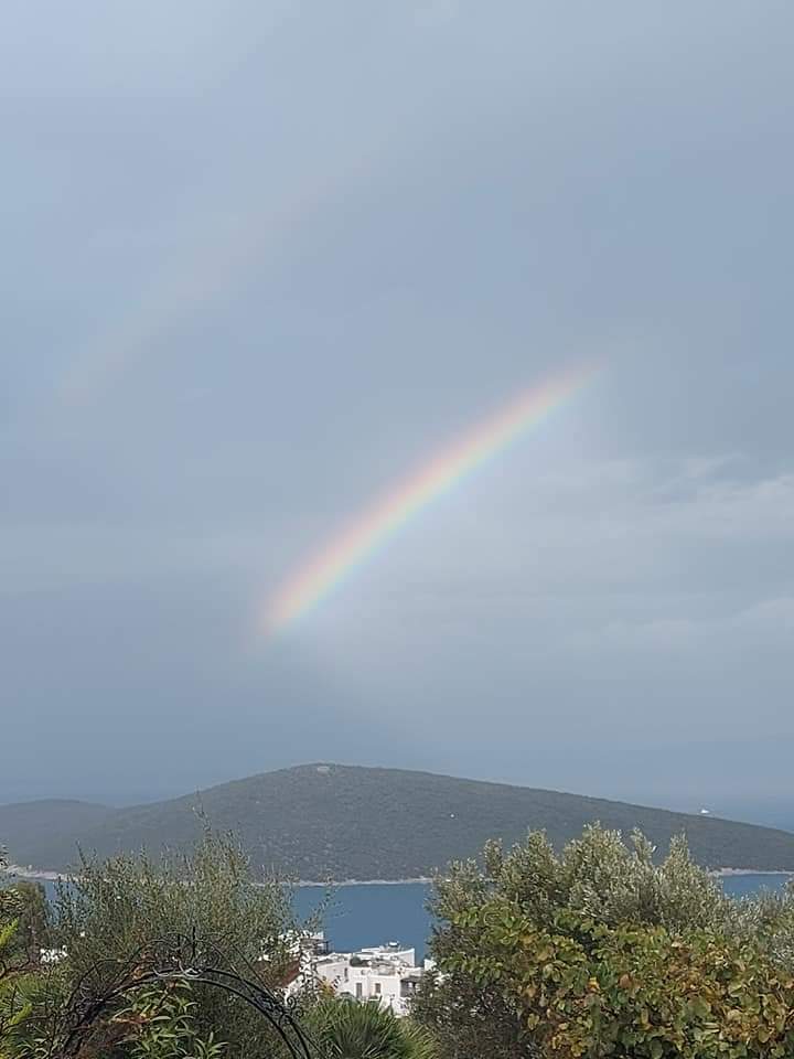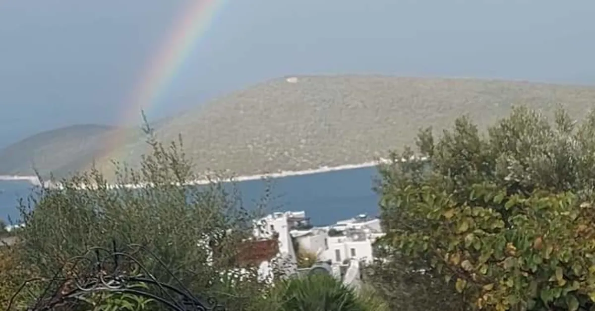 Meteoroloji Genel Müdürlüğünün Muğla için yağış uyarısının ardında, tatil cennetinde yağmur etkili oldu. Muğla'nın Bodrum ilçesinde etkili olan yağış sonrası ortaya güzel manzaralar çıktı. Türkbükü ve Hekimköy mevkilerinde yağıştan sonra oluşsan gökkuşağı güzel görüntüler oluşturdu. Bodrumlular seyrinde doyumsuz manzaranın keyfini çıkardı, fotoğraflarını çekip sosyal medyada paylaştı. Yağmur sonrası görselleri paylaşan vatandaşlar şu ifadeleri kullandı: "Bugünkü havamız. Hem yağmur hem Gökkuşağı. Bu güzelliği yaşamak ayrıcalıktır. Bodrum Türkbükü, Hekimköy"