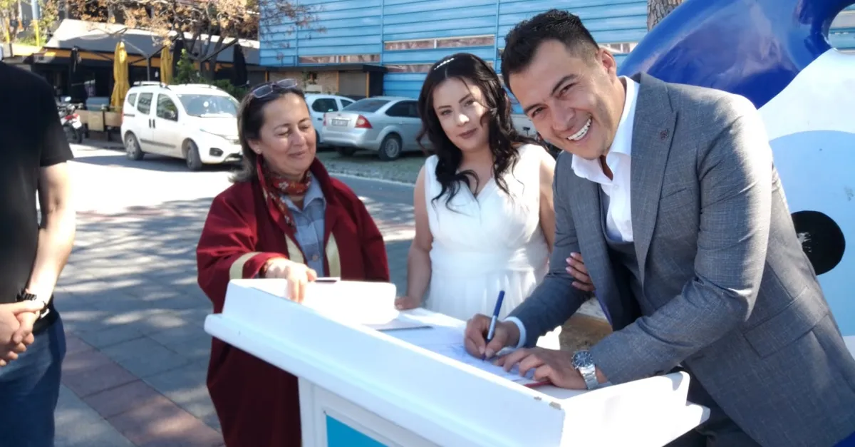 Kahramanmaraş'ta evlilik hazırlığı yapan ancak asrın felaketi deprem sonrası ailesiyle Fethiye de Çiftlik mahallesine gelen Halk Eğitim Merkezi antrenörü 27 yaşındaki Zehra Kaygas ile 35 yaşındaki Serkut Yaşar Nikah Dairesine evlenmek için başvurdular.