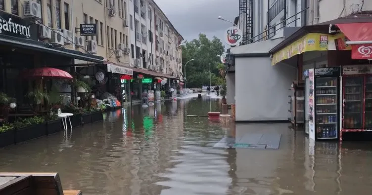 Fethiye'de etkili olan kuvvetli yağış sonrası birçok ev ve işyeri sular altında kaldı yollar göle dönerken, vatandaşlar ve araç sürücüleri yağış nedeniyle zor anlar yaşadı. Sel suları denizin rengini kahverengiye dönüştürdü.