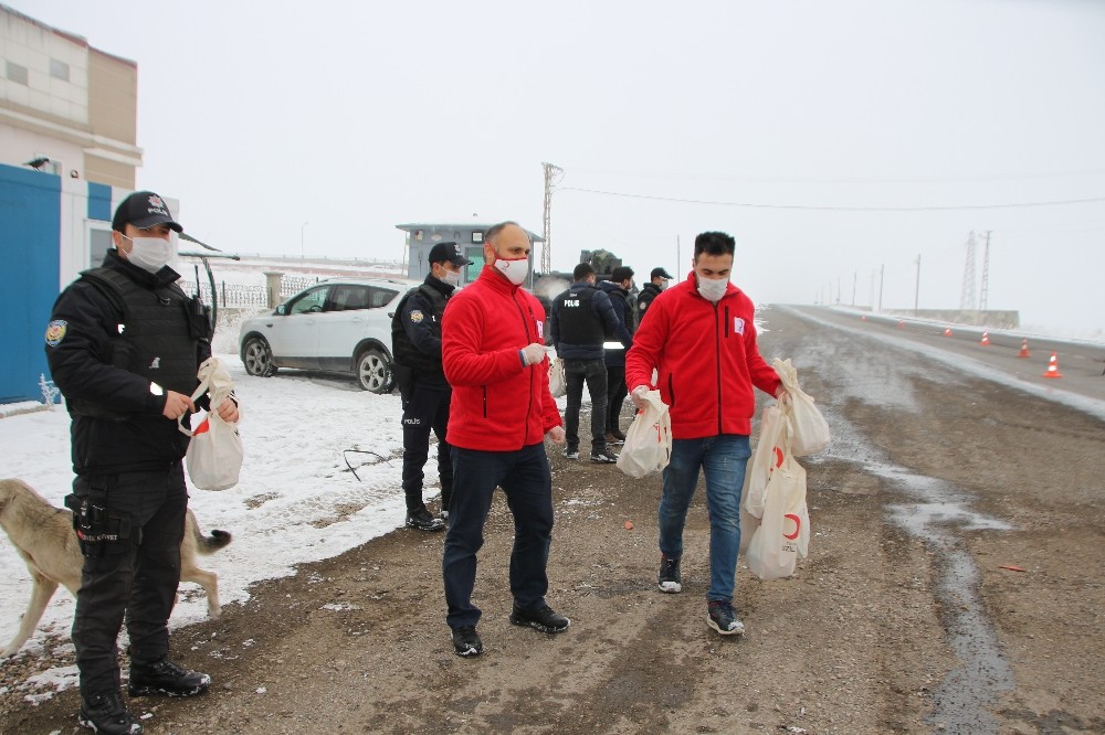 Türk Kızılay´ı Varto Şubesi Başkanı Hamza Sezgin Yonat, "Yılbaşı ve pandemi sürecinde hava sıcaklığının eksi 15 dereyi bulan soğukta görevi başında olan polis memurlarımıza çeşitli ikramlarda bulunduk. Sıcak çorba, kraker, çikolata gibi ikramlarımız oldu. İnşallah Türk Kızılay´ı, bu ikramlarla polisinin içini ısıtmıştır" dedi.