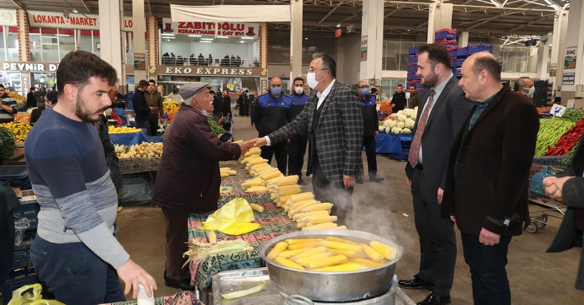 Kahvaltı sonrasında pazar yeri içerisindeki tezgâhları gezerek esnaflara hayırlı kazançlar dileyen Başkan Savran, Zabıta Kontrol Noktasını da ziyaret etti.