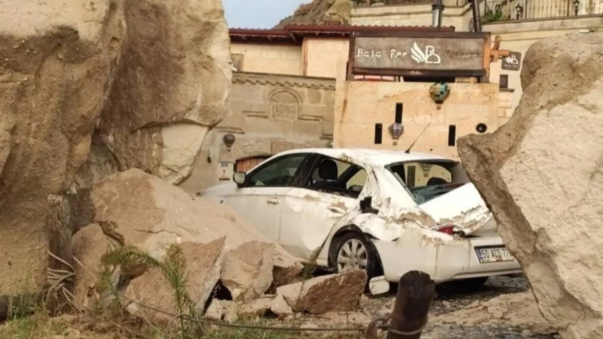 Avanos ilçesine bağlı Çavuşin köyünde akşam saatlerinde etkili olan sağanak yağış nedeniyle sel oluştu. Sel nedeniyle kopan kaya parçaları park halindeki 3 araca hasar verdi. Etkili olan sağanak nedeniyle düşen kaya parçaları, park halindeki otomobilde hasara neden oldu. Sel suları yolları kapatırken, Rafet E. ve 12 yaşındaki torunu araçlarında mahsur kaldı. İhbar üzerine bölgeye jandarma ve İl Özel İdaresi ekipleri sevk edildi. Ekiplerin çalışması sonucu dede ve torunu araçtan çıkarıldı. Ayrıca, kopan kaya parçaları da yolları kapattı.