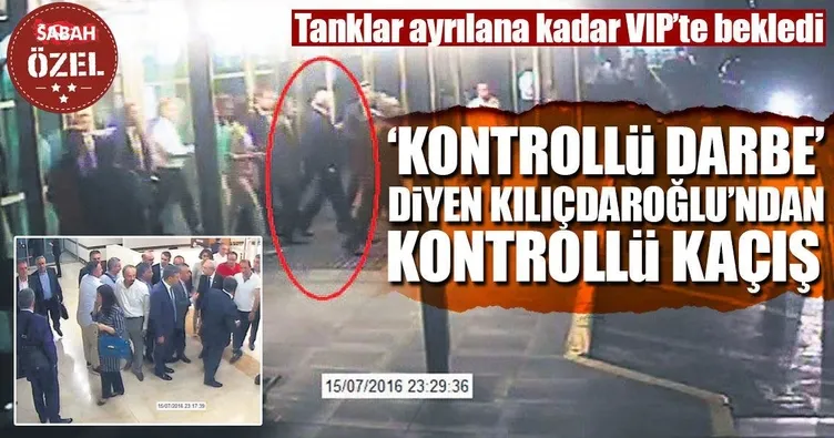 CHP Genel Başkanı Kemal Kılıçdaroğlu'nun 15 Temmuz darbe girişimi sırasında İstanbul Atatürk Havalimanı'ndan kaçış görüntülerine SABAH ulaştı. 15 Temmuz'a 'kontrollü darbe' diyerek büyük tepki çeken Kılıçdaroğlu'nun, darbe saatlerinde havalimanında birkaç metredeki cuntacı askerlerle karşılaşmamak için VIP'te beklediği, tanklar ayrıldıktan sonra da çıkış yaptığı görüntülerle ortaya çıktı.