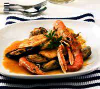 Büyük bir tencereye aşağıdaki malzemeleri sırasıyla katın: Doğranmış soğan, kabuğu soyulmuş, ince doğranmış domates, ezilmiş sarımsak, bir rezene sapı, küçük bir demet maydanoz, bir tutam kekik, bir defne yaprağı, biraz kurutulmuş portakal kabuğu, sakalı ayıklanmış midyeler ve diğer kabuklu deniz hayvanları, zeytinyağı, tuz ve karabiber, safran. Bütün bu malzemeyi karıştırıp birkaç saat serin bir ortamda bekletin, tatları birbirine geçsin. Kılçıkları ve derisi ayıklanmış, olabildiğince eşit parçalar halinde kesilmiş balık filetolarını bir yana ayırın. Kabukluların üstüne çıkıncaya kadar tencereye su ya da daha önceden baş ve kemikleri kaynatarak hazırladığınız balık suyunu ilave edin. Üzerini kapatıp 7-8 dakika kadar harlı ateşte kaynatın. Sonra balık filetolarını da katın, hepsini 7 dakika daha kaynatın. Bundan sonra kabukluları ve filetoları büyük bir tabağa çıkarın. Bir çorba servis kasesinin altına kuru ekmek dilimlerini yerleştirin. Üstüne çorbanın suyunu yavaşça boşaltın, ayırdığınız deniz ürünleri ve balıkları da yerleştirip, biraz kıyılmış maydanozla süsleyerek sıcak sıcak servis edin.