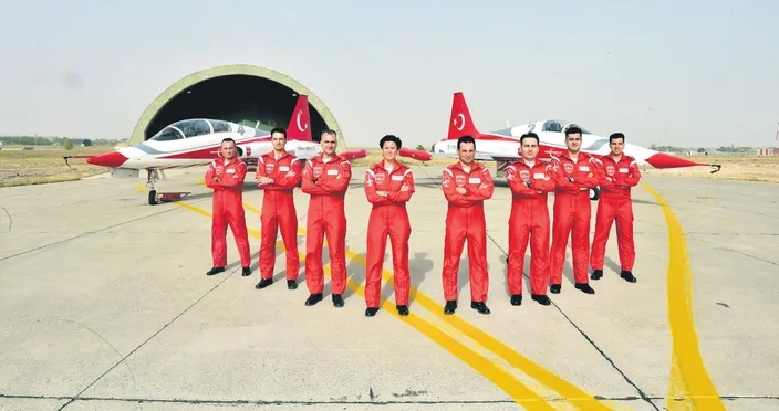 - En az 450 saatlik uçuşunuz olmalı. Bu bireysel bir çalışma değil. O nedenle timin gösterilerindeki bütünlük ortaya çıkıyor. Birimizin en ufak hatası iki veya üç kişiyi etkileyebilir. Hatta yere yakın gösterileri yüksek süratle yaptığımız için aksiliklerle sonuçlanabilir. O nedenle ekip işbirliğine sahip olmak, takım ruhunu taşıyabilmek büyük önem taşıyor. Türk Yıldızları'ndaki arkadaşlarımızın hepsi savaş pilotu. Ben de 1998 Hava Harp Okulu mezunuyum. Çeşitli filolarda pilot olarak görev yaptım. 2010 yılından itibaren F5'te öğretmen pilotum. 2014'te F5'lerin görevine son verilmesiyle kendi isteğimle filoya katıldım.