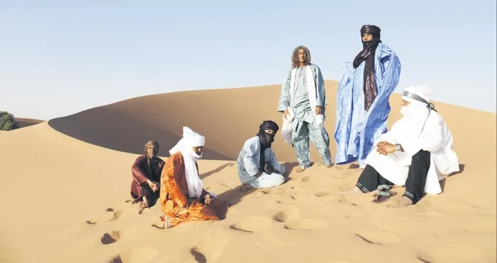 Her ne kadar Grammy ödüllü, dünyayı dolaşan bir müzik grubu olsalar da onlar bildiğiniz rock yıldızlarından çok farklılar. Mali'nin kuzey bölgesinde bulunan Sahra çölünde temelleri atılan Tinariwen, şarkılarını kendileri gibi o bölgede yaşayan Tuareg göçebelerinin kullandığı Tamaşek dilinde söylüyor, sahneye geleneksel kıyafetleri ile çıkıyorlar. İç çatışmaların hüküm sürdüğü Mali'de dört kuşak, 38 yıldır müzik yapan Tinariwen'in kurucusu İbrahim Ag Alhabib, bir filmde izlediği gitar çalan kovboydan etkilenip bulduğu malzemelerle kendi gitarını yaparak müziğe başlamış. Grup üyeleri ise ilk kez Libya'daki mülteci kamplarında bir araya gelmiş. 2012 yılında Tassilli ile En İyi Dünya Müziği Albümü dalında Grammy kazanan grup üyeleri, konser vererek dünyayı gezse de doğdukları topraklardan yani çölden vazgeçemiyor, orada yaşamaya devam ediyorlar. 22 Mart'ta Zorlu PSM'de verecekleri konser öncesi mail yoluyla ulaştığımız gruba da ilk sorumuz bu konuyla ilgili oldu.