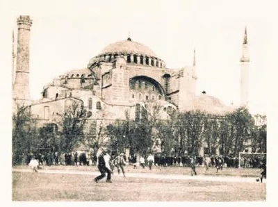 Bu görüntülerde Ayasofya'nın önündeki alanda futbol maçı oynandığını görüyoruz. Kesin tarih belli değil. Tahminler Mütakere Dönemi olabileceğine dair...