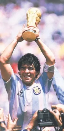 1986'daki Arjantin ve İngiltere arasındaki çeyrek final mücadelesi Maradona efsanesinin zirve noktası olarak kabul edilir. 2-1 biten mücadelede iki gol atan Maradona elle attığı ilk golüne 'Tanrı'nın Eli' yakıştırmasını yapıp bir ulusun sesi olurken ikinci golünde ise tam 6 İngiliz'i çalımlayarak topu kaleyle buluşturur.