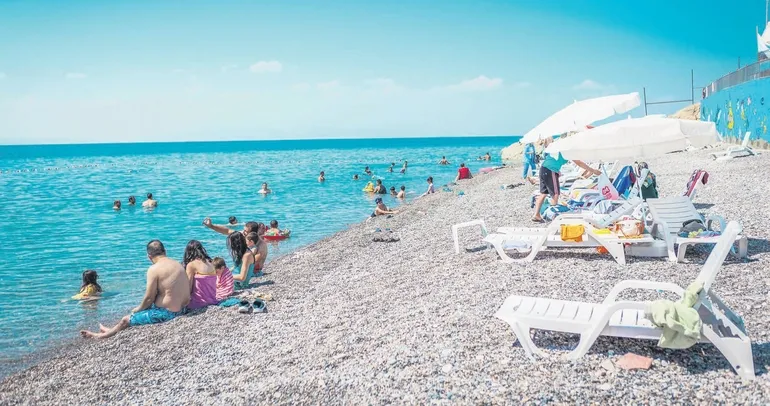 Sahil kum değil ince çakıl taşlarından oluşuyor. Bu durum benim ayaklarımı acıtsa da halk memnun. "Kum çok bulaşıyor çakıl daha iyi" diye savunuyor mavi bayrak plajını. Gezindikçe İstanbul'dan gelen bir aileye rastlıyorum. Baba aslen Vanlıymış. "Bu plaj sayesinde çoluk çocuğu Van'a gelmeye ikna ettim. Her gün buraya gelip yüzüp mangalımızı yakıyoruz. Artık her sene geliriz" diyor.