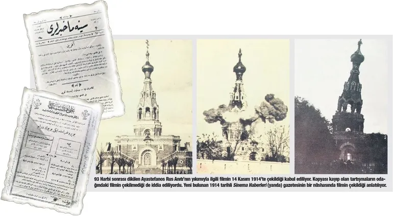 - Evet. Aynen öyle. Ayastefanos filmiyle ilgili bu kadar tartışmamızın sebebi elimizde somut kanıtların olmamasıydı. Bu filmle ilgili şimdilik en geniş bilgi Osmanlı Arşivi'nde bulduğumuz Sinema Haberleri adlı gazete/dergide yer alıyor. Bu süreli yayının adını biliyorduk. Ama bugüne kadar hiçbir nüshasına ulaşamamıştık. Şimdi elimizde bir nüshası var. Bu nüshada o dönem 'Moskof Abidesinin Tahribi' olarak isimlendirilen Ayastefanos ile Cihad-ı Ekber İlanı Mitingi filminin Fuat Uzkınay ve Mösyö Mordo tarafından çekildiğine dair bilgiler var.