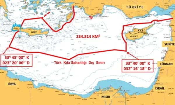 Türkiye'nin Akdeniz sahilleri, neredeyse Mısır'ın sahillerinden daha uzundur. Dolayısıyla Yunanistan ileri sürdüğü tezlerle gerek Ege'de gerekse Doğu Akdeniz'de Türkiye'yi sadece kıyı sahillerinde hapsetmeye çalıştığı imajını veriyor.