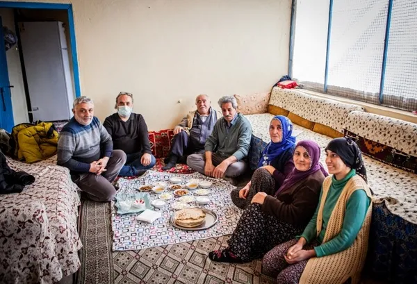 . Bizi köyün muhtarı Ramazan Alpaslan karşıladı. Alpaslan'ın evi yıkılmayıp hasar alan ender evlerden. Ama o yine de devletin onlara verdiği konteynırda yaşıyor. Köy halkı onlara verilen konteynırlara saç ilaveler yapıp evi aratmayan birer yaşam alanına çevirmişler. Bu yapılara baca sistemi kurup sobayla ısınıyorlar. Uzun süre elektrik sobasıyla ısınmışlar daha önce. Ramazan Bey ve eşi Gülay Hanım bizi evlerinde ağırlıyor. Müthiş bir kahvaltı sofrasındayız. Yer sofrasındaki her şey doğal. Kendi ürünleri. Süt, bal (kendilerine yetecek kadar arıcılıkla uğraşıyorlar), çökelek, tereyağı, yoğurt, ceviz ve kayısı bademi. Ve olmazsa olmaz köy ekmeği...