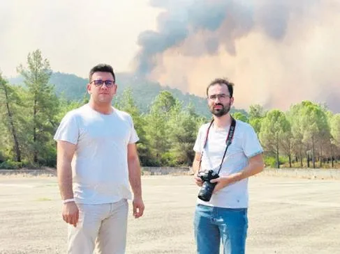 Muğla'nın Marmaris ilçesinde 29 Temmuz günü başlayan ve halen Köyceğiz'de devam eden orman yangınlarının Saffet Azak ve Mikail Zeybek ile yakın tanığı olduk. Sadece biz mi? Tabii ki hayır. Yangınlar başlar başlamaz hızlı bir refleks göstererek Azak ve Zeybek ve ben Marmaris, İlker Turak, Murat Şengül, Zeynel Yaman, Erdoğan Öztürk, Çağrı Oğuz, Vural Karakaş, Muhammed Uzun ve Koray Taşdemir ise Antalya'da tehlikeli noktalarda görev yaptılar. Bölgelerde herkes çok zorlandı tabii ki, ama Marmaris'te ve Köyceğiz'de yaşadıklarımızı bir de biz anlatalım istedik. Turizm cenneti ve dünyanın incisi olarak adlandırılan Marmaris, tarihinin en büyük yangınıyla çepeçevre sarılıyken, olayların başladığı günün akşamı Saffet Azak ile birlikte Marmaris'e gittik. Daha önce böyle bir olayı gözlemlememiş iki gazeteci ve insan olarak Marmaris'e girmeden hemen önce dağların üzerinde çizgi şeklinde yükselen alevlerin geceyi kızıl renge boyadığını gördük. Hemen sağda bulunan ve Marmaris'i tepeden gören bir noktaya arabayı park ettim. Saffet elindeki fotoğraf makinesiyle bir fotoğraf çekti ve o kare içimizi parçaladı. Gökyüzü tamamen alevlerin kızıllığına boyanmıştı ve bu durum yayılarak devam ediyordu.
