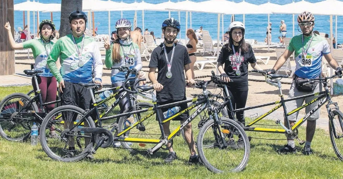 Tek başına bisiklete binmekten daha zevkli çünkü sohbet etme imkanı var. Beraber sürüşlerde çok eğleniyoruz" ifadelerini kullanıyor. Tandem bisikletlerde önde oturan bir başka isim mühendis Yunus Bal... O da çevrede gördüğü çöpleri diğer arkadaşlarına betimlediğini anlatıyor: "Tabii ki hoş değil ama içinde bulunduğumuz ortamı her haliyle bilmelerini istiyorum." Görme engelli psikolog Nurdan Kılıçlı dört yıldır bisiklet sporuyla ilgileniyor. Kendisi gibi engelli arkadaşlarının tavsiyesiyle başladığı bu sporu büyük mutluluk duyarak yaptığını söyleyen Nurdan, yarışırken hissettiklerini şöyle anlatıyor: "Yolları birlikte pedallamak çok güzel bir duygu. Kimi zaman kokusunu aldığım bir çiçeğin adını söylediğimde öndeki arkadaşım, 'Evet şimdi yanından geçtik' diyor. Bisiklet kullanırken hissettiğim en önemli duygu kesinlikle özgürlük."
