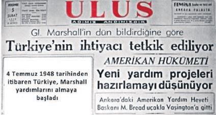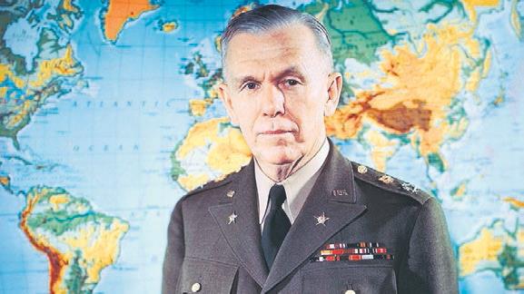 George Catlett Marshall, ABD'nin 50. Dışişleri Bakanı... ABD Ordu- Ordusu'nda İkinci Teğmen olarak göreve başladı. İki Dünya Savaşı'nda da su'nda görev yaptı, 1944'te general ardından Genelkurmay Başkanı oldu. İstifa etmesinin ardından, savaş sonrası diplomasiyi yönetmek için görev yaptı. Dışişleri Bakanı oldu, 1947-1948'de Batı Avrupa'ya yönelik devasa yardım paketi Marshall Planı'nı hayata geçirdi. Hazır ithalata ve yardıma alıştırma, sömürgeleştirme süreci yaşandı. ABD'deki margarin yağlarının, doymamış yağların, Türkiye'ye satılması ve sokulması için zeytinyağını kötülemesi bile müfredata alındı. Dünyanın en sağlıklı ürünleri bizdeyken ABD'nin kanserojen ürünlerini tükettik. Marshall Planı, NATO'ya girdikten sonra IMF'ye muhtaç olma, Avru- Avrupa'dan gelecek yardımlara, lü- pa'dan lütuflara muhtaç olma şeklinde tuflara Türkiye'nin işlevsiz bir ülke olmasının temellerinin atıldığı anlaşma oldu.
