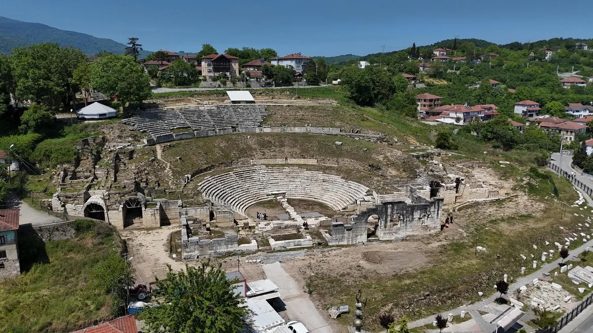 "Batı Karadeniz'in Efes'i" olarak bilinen Prusias ad Hypium Antik Kenti'nin günümüze kadar ulaşan en önemli eseri olan antik tiyatronun toprak altında kalan kısmı yüzde 85 oranında gün yüzüne çıkarıldı.