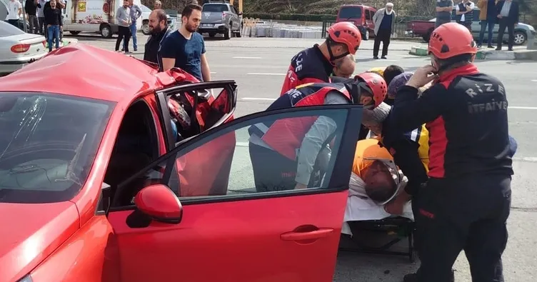 İyidere ilçesi sahil yolu Çiftlik köyü yol kavşağında ışıklarda duran otomobile TIR çarpması sonucu araçta bulunan iki kişi yaralandı.