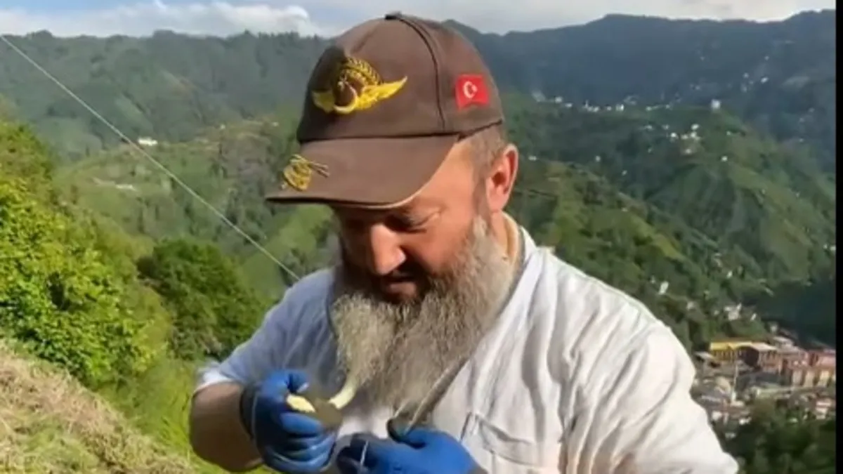 Çay tarlasında yılanın başını tutarak boynuna dolayan Ali Dilmaç, yılanı anlattıktan sonra kimseye zarar vermemesi için yılanı öldüreceğini belirterek, "Burada çay toplayacağız, Allah korusun zehirli bir yılan ve birini ısırabilir, bu nedenle bu yılanı öldürmek zorundayım" dedi.