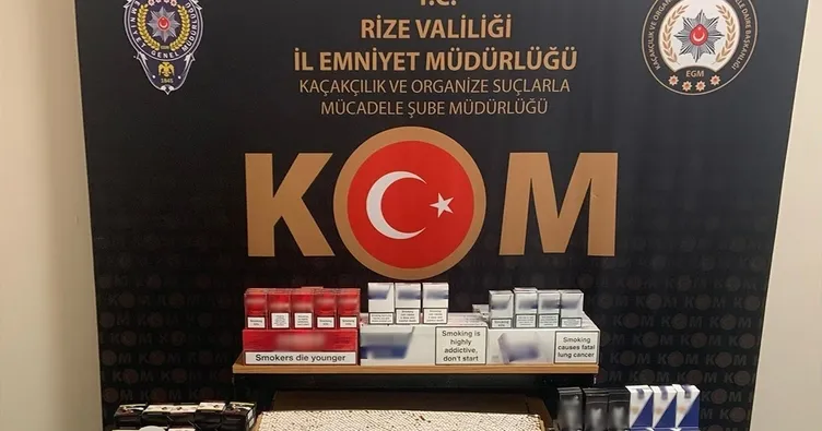 Rize Emniyet Müdürlüğü Kaçakçılık ve Organize Suçlarla Mücadele ekipleri il genelinde çeşitli adreslerde yaptıkları aramalarda kaçak sigara ve çeşitli kaçak ürünler ele geçirdi. Emniyet Müdürlüğü Kaçakçılık ve Organize Suçlarla Mücadele Şube Müdürlüğü ekipleri il genelinde yaptıkları aramalarda 26 bin 420 Makaron, 1965 paket sigara, 69 şişe kaçak içki, 7 Kilo kaçak tütün, 20 Paket elektronik sigara tütünü, 4 litre Alkol aroması, 11 adet cep telefonu, 6 adet kaçak ilaç (Hormon ilacı) ele geçirildi. Kaçak ürünler ile birlikte 14 şahıs yakalandı ve haklarında yasal işlem yapıldı.