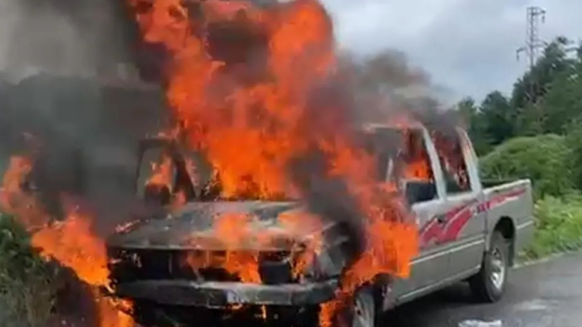 Bir anda tüm aracı saran alevler nedeniyle kamyonet kullanılamaz hale geldi. Olay yerine gelen itfaiye ekipleri yangına müdahale ederek kontrol altına aldı.