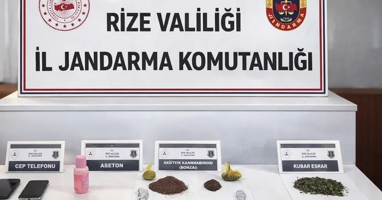 Rize İl jandarma komutanlığı ekipleri Pazar ilçesinde 2 şahsı yönelik yaptıkları çalışmalar sonucunda şahıslardan birinin ikamet ve evinde yapılan aramalarda 25 gram Kubar esrar, 91 gram Bonzai maddesi, 1 adet 60 Ml gram aseton ele geçirdiler. Şahıslar gözaltına alındı, jandarmadaki işlemlerinin ardından Adliyeye sevk edilecekler.