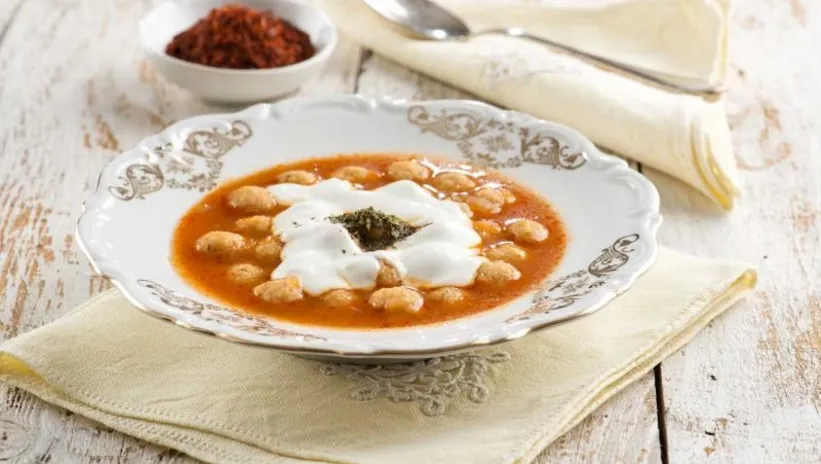 YAPILIŞI: Unun içine 1 yumurta kırın. Biraz tuz ve su ile mantı hamuru gibi katı bir kıvamda yoğurun. Hamuru 1 milimetre kalınlığında açın. Açtığınız yufkayı kenarları 1.5 santimetre büyüklüğünde kareler halinde kesin. Bu küçük kareleri ortadan sıkıştırıp fiyonk şekline getirin. 1 litre suyu bir tencerede kaynatın. Biraz tuz ilave ederek hazırladığınız hamurları içine atın. Pişince altını kapatıp 10-15 dakika tencere içinde bekletin. 1 kase yoğurt içine bir baş sarımsağı ezerek ekleyip ve yoğurdu iyice çırpın. Sarımsaklı yoğurdu hamurun üzerine dökerek iyice karıştırın. Bir tavada tereyağının yarısını eritin ve çorbanın üzerine dökün. Yağın diğer yarısını eriterek içine salça veya pul biberli sos hazırlayın. Yoğurt ve sosla servis edin.