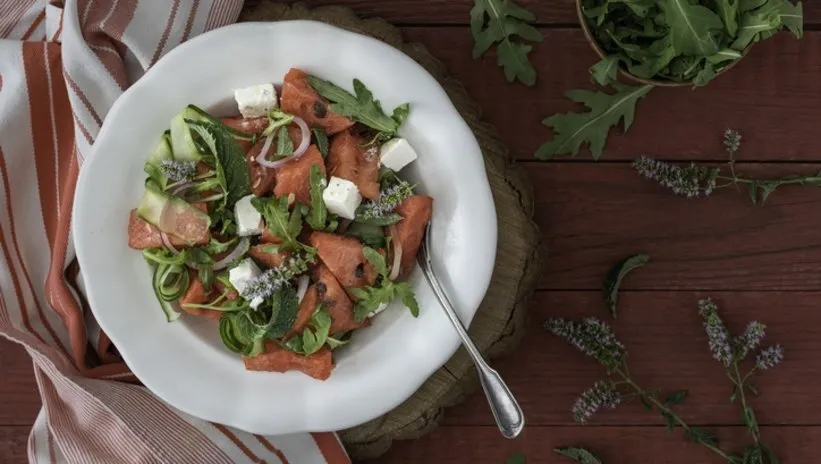 1. Ferahlatıcı Yaz Klasiği: Karpuzlu, Beyaz Peynirli ve Otlu Salata