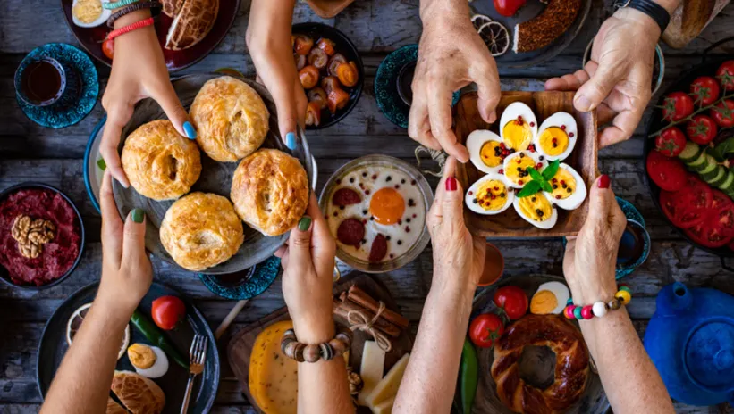 Misafirliklerde yüksek kalorili ikramlıkların olabileceğine dikkat çeken Dyt. Çoruh, şunları söyledi: "Her seferinde öncelik tatlıdan ziyade sağlıklı atıştırmalık olan çiğ kuruyemişlerde olmalı. Uzun bir süre aç kalan vücutta sindirim sistemi dinlenir. Bağırsaklar tembelleşir. Kabızlık sorunuyla karşılaşabiliriz. Sindirimi desteklemek amacıyla lif içeriği yüksek salatalar, sebze yemekleri gibi besinleri ana yemek tercihlerine eklemeliyiz. Pişirme yöntemi olarak kızartmadan kaçınmalı, ızgara, fırın, tencere yemeklerine yönelmeliyiz. Tabaklara tüketilecek kadar besinler almak kontrollü besin tüketimine yardımcı olacaktır."